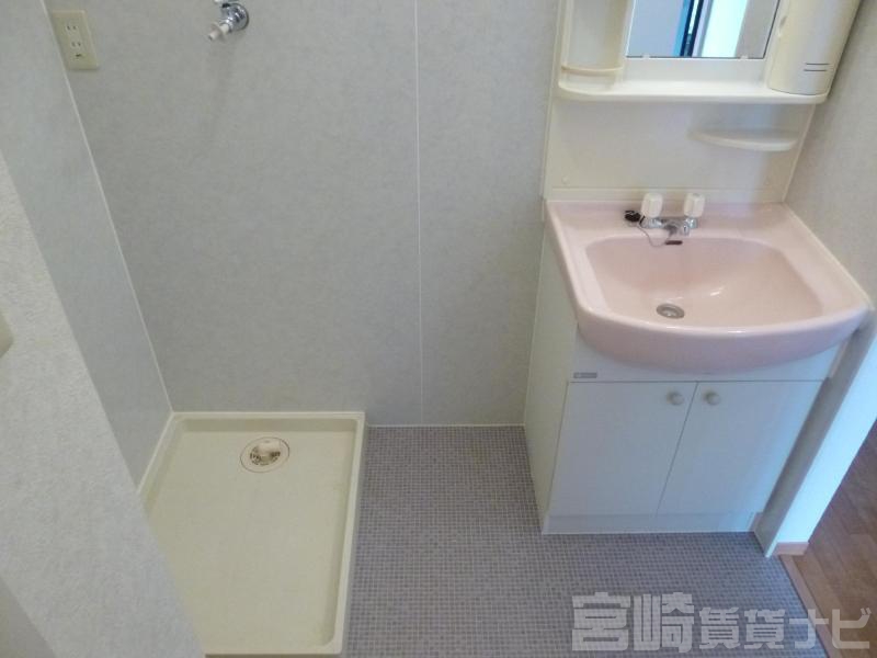| 設備 | 水道:公営、 ガス:有(プロパンガス・集中)、 排水:公共下水、 ペット:不可、 2人入居可:可、 給湯:有(ガス)、 カウンターキッチン:有、 こんろ:無(ガス配管あり)、 バス・トイレ別:有(バストイレ別)、 バス:有(専用)、 トイレ:有(専用/水洗)、 シャワー:有、 独立洗面台:有、 洗濯機置場:屋内、 インターホン:有(ドアホンのみ)、 冷暖房設備:有(エアコン)、 フローリング:有、 バルコニー:有、 収納:有、 ケーブルTV:可、 ブロードバンド:利用料無料、 駐輪場:有(屋根付) | ||