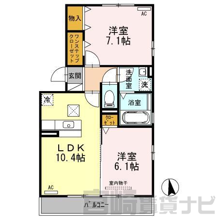 | 間取詳細 | 洋7.1 洋6.1 LDK10.4 | ||