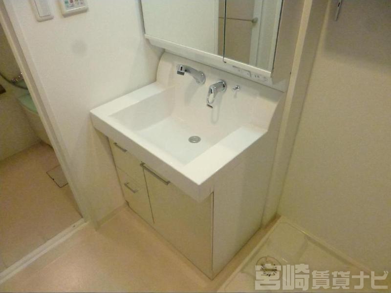 | 設備 | 水道:公営、 ガス:有(都市ガス)、 排水:公共下水、 ペット:不可、 2人入居可:可、 給湯:有(ガス)、 こんろ:無(ガス配管あり)、 バス・トイレ別:有(バストイレ別)、 バス:有(専用)、 トイレ:有(専用/水洗)、 シャワー:有、 シャンプードレッサー:有、 独立洗面台:有、 洗濯機置場:屋内、 温水洗浄便座:有、 オートロック:有、 インターホン:有(TVモニタ付)、 冷暖房設備:有(エアコン)、 フローリング:有、 エレベーター:有、 バルコニー:有、 収納:有、 ケーブルTV:可、 ブロードバンド:利用料無料、 駐輪場:有(屋根付) | ||