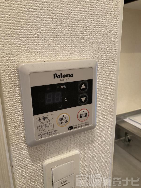| 設備 | 水道:公営、 ガス:有(プロパンガス・個別)、 排水:公共下水、 角部屋:有、 給湯:有(ガス)、 こんろ:無(ガス配管あり)、 こんろ口数:1口、 バス・トイレ別:有(バストイレ別)、 バス:有(専用)、 トイレ:有(専用/水洗)、 シャワー:有、 追焚き:有、 浴室乾燥機:有、 シャンプードレッサー:有、 独立洗面台:有、 洗濯機置場:屋内、 温水洗浄便座:有、 インターホン:有(TVモニタ付)、 冷暖房設備:有(エアコン)、 フローリング:有、 バルコニー:有、 ケーブルTV:配線設置済(要個別契約)、 BS:有、 ブロードバンド:利用料無料、 駐輪場:有、 24時間対応:有 | ||