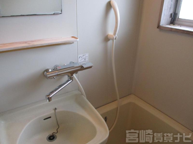| 設備 | 水道:公営、 ガス:有(プロパンガス・集中)、 排水:公共下水、 ペット:不可、 2人入居可:可、 楽器相談:不可、 給湯:有(ガス)、 こんろ:無(ガス)、 バス・トイレ別:有(バストイレ別)、 バス:有(専用)、 トイレ:有(専用/水洗)、 シャワー:有、 洗濯機置場:屋外、 温水洗浄便座:有、 インターホン:有(TVモニタ付)、 冷暖房設備:有(エアコン)、 バルコニー:有、 収納:有、 ケーブルTV:配線設置済(要個別契約)、 ブロードバンド:利用料無料、 リフォーム:リフォーム済、 タダレンジャー:対応、 24時間対応:有 | ||