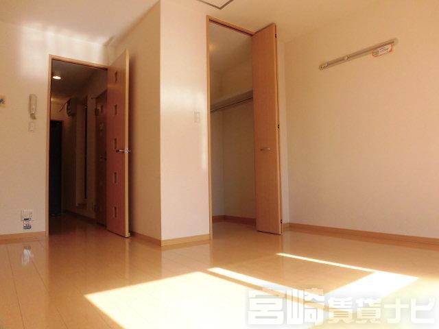 | 設備 | 水道:公営、 ガス:有(プロパンガス・集中)、 排水:公共下水、 2人入居可:不可、 給湯:有(ガス)、 こんろ:無(ガス配管あり)、 バス・トイレ別:有(バストイレ別)、 バス:有(専用)、 トイレ:有(専用/水洗)、 シャワー:有、 シャンプードレッサー:有、 独立洗面台:有、 洗濯機置場:屋内、 温水洗浄便座:有、 インターホン:有(ドアホンのみ)、 冷暖房設備:有(エアコン)、 フローリング:有、 バルコニー:有、 収納:有、 ウォークインクローゼット:有、 ケーブルTV:配線設置済(要個別契約)、 BS:有、 駐輪場:有 | ||