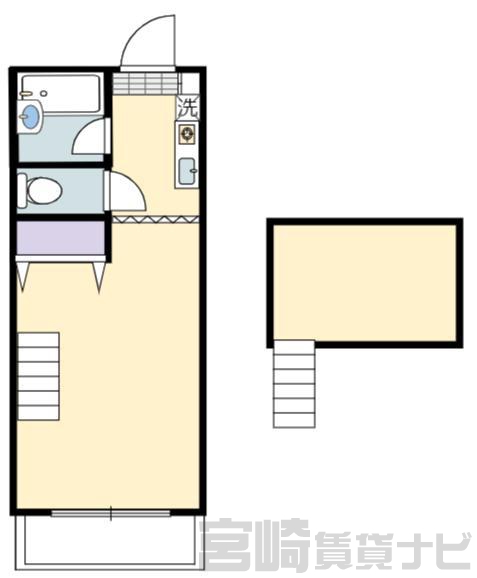 | 設備 | ロフト付き、 水道:公営、 ガス:有(プロパンガス・集中)、 排水:公共下水、 ペット:不可、 楽器相談:不可、 給湯:有(ガス)、 こんろ:有(ガス)、 バス・トイレ別:有(バストイレ別)、 バス:有(専用)、 トイレ:有(専用/水洗)、 シャワー:有、 洗濯機置場:屋内、 温水洗浄便座:有、 インターホン:有(TVモニタ付)、 冷暖房設備:有(エアコン)、 フローリング:有、 バルコニー:有、 ロフト:有、 収納:有、 ブロードバンド:利用料無料、 タダレンジャー:対応、 24時間対応:有 | ||
