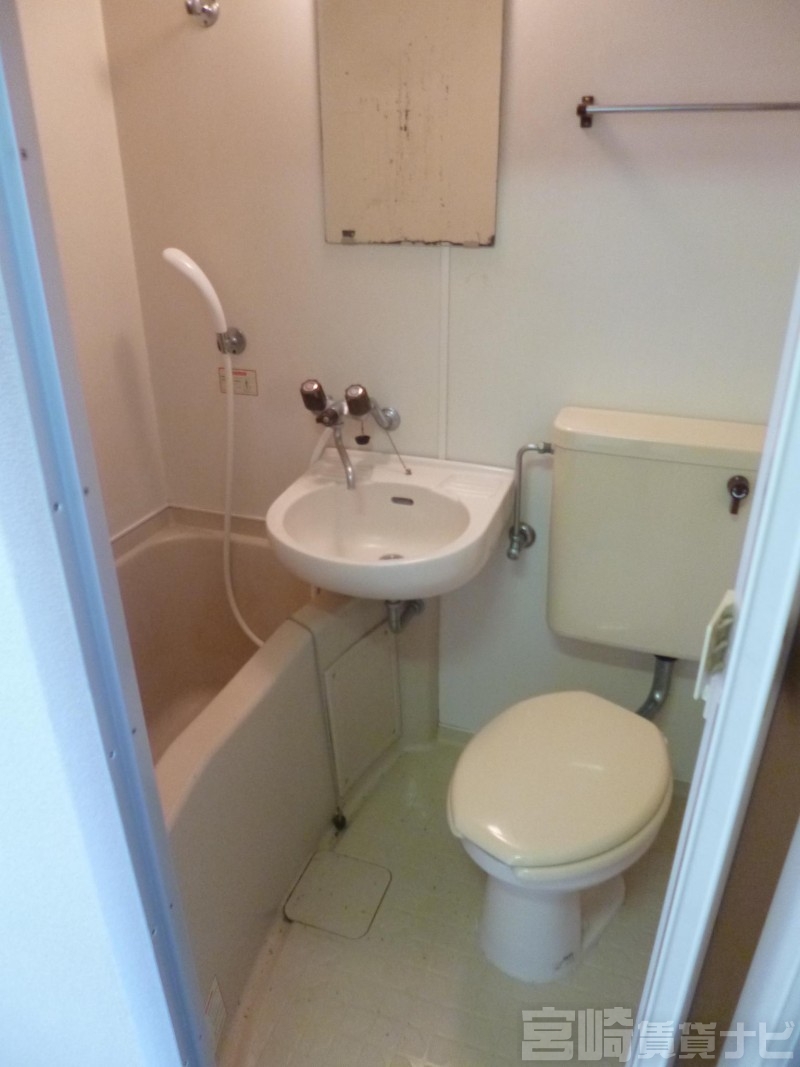 | 設備 | 水道:公営、 ガス:有(プロパンガス・集中)、 給湯:有(ガス)、 バス・トイレ別:有(3点ユニット)、 シャワー:有、 洗濯機置場:屋外、 冷暖房設備:有(エアコン)、 フローリング:有、 ブロードバンド:利用料無料 | ||