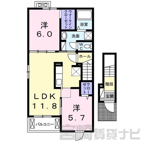 | 間取詳細 | 洋5.7、洋6、LDK11.8 | ||
