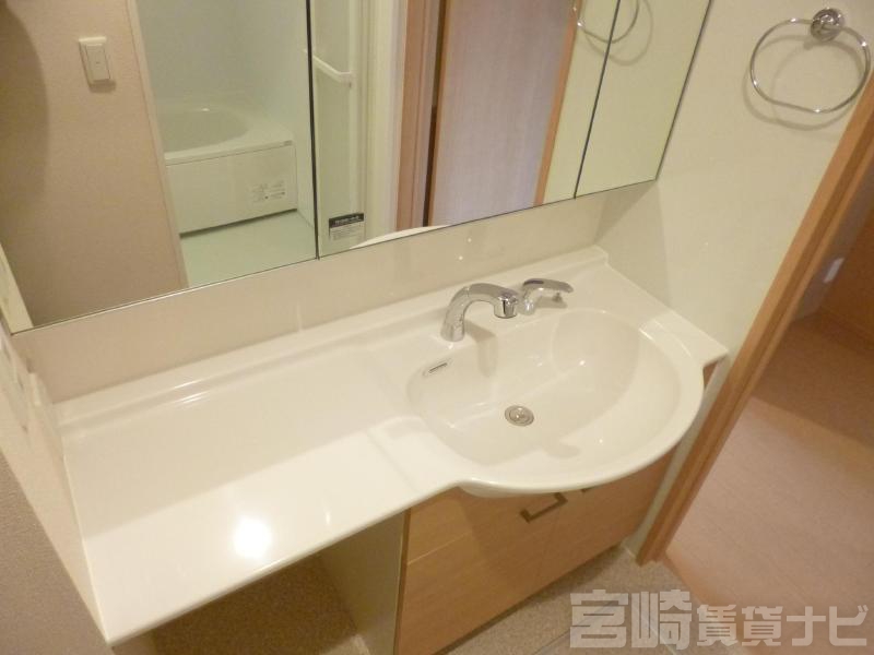 | 設備 | 水道:公営、 ガス:有(プロパンガス・集中)、 排水:公共下水、 角部屋:有、 ペット:不可、 2人入居可:可、 給湯:有(ガス)、 カウンターキッチン:有、 こんろ:無(ガス配管あり)、 バス・トイレ別:有(バストイレ別)、 バス:有(専用)、 トイレ:有(専用/水洗)、 シャワー:有、 追焚き:有、 浴室乾燥機:有、 シャンプードレッサー:有、 独立洗面台:有、 洗濯機置場:屋内、 温水洗浄便座:有、 インターホン:有(TVモニタ付)、 冷暖房設備:有(エアコン)、 フローリング:有、 バルコニー:有、 収納:有、 BS:有、 ブロードバンド:利用料無料、 駐輪場:有(屋根付)、 24時間対応:有 | ||