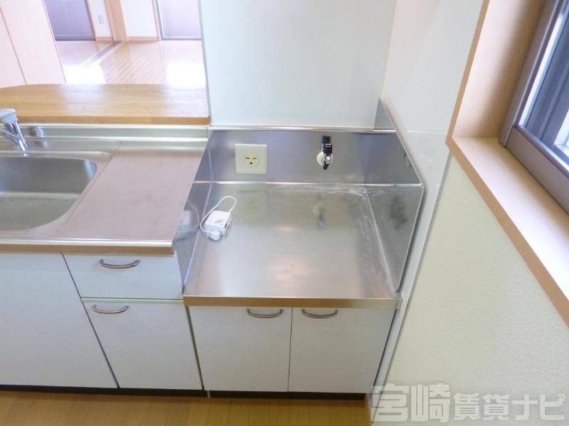 | 設備 | 水道:公営、 ガス:有(プロパンガス・集中)、 排水:公共下水、 角部屋:有、 ペット:不可、 2人入居可:可、 給湯:有(ガス)、 カウンターキッチン:有、 こんろ:無(ガス配管あり)、 バス・トイレ別:有(バストイレ別)、 バス:有(専用)、 トイレ:有(専用/水洗)、 シャワー:有、 シャンプードレッサー:有、 独立洗面台:有、 洗濯機置場:屋内、 オートロック:有、 インターホン:有(ドアホンのみ)、 冷暖房設備:有(エアコン)、 フローリング:有、 出窓:有、 バルコニー:有、 収納:有、 ケーブルTV:配線設置済(要個別契約)、 駐輪場:有(屋根付) | ||
