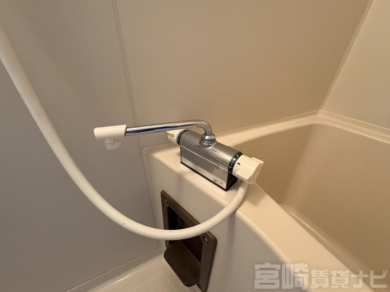 | 設備 | 水道:公営、 ガス:有(プロパンガス・集中)、 排水:公共下水、 角部屋:有、 ペット:不可、 2人入居可:不可、 楽器相談:不可、 給湯:有(ガス)、 こんろ:無(ガス配管あり)、 バス・トイレ別:有(バストイレ別)、 バス:有(専用)、 トイレ:有(専用/水洗)、 シャワー:有、 洗濯機置場:屋外、 温水洗浄便座:有、 インターホン:有(TVモニタ付)、 冷暖房設備:有(エアコン)、 フローリング:有、 バルコニー:有、 収納:有、 ケーブルTV:エリア内(配線無)、 ブロードバンド:利用料無料、 駐輪場:有(屋根付)、 タダレンジャー:対応、 24時間対応:有 | ||