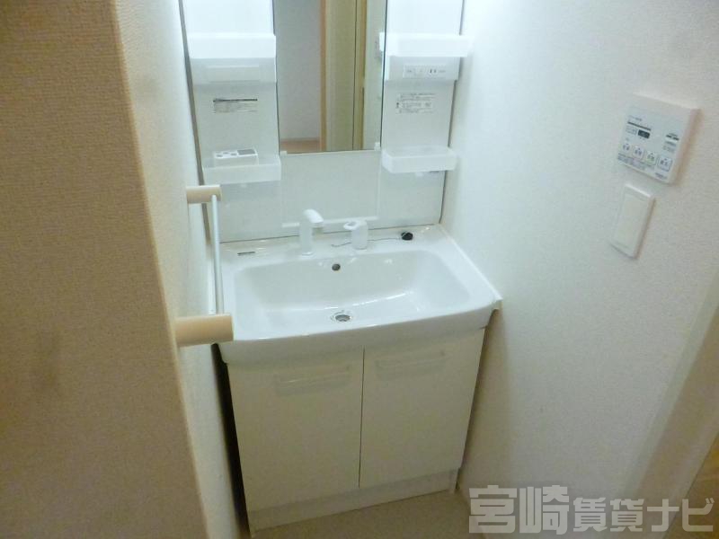 | 設備 | 水道:公営、 ガス:有(プロパンガス・集中)、 排水:公共下水、 角部屋:有、 ペット:不可、 2人入居可:可、 給湯:有(ガス)、 こんろ:無(ガス配管あり)、 バス・トイレ別:有(バストイレ別)、 バス:有(専用)、 トイレ:有(専用/水洗)、 シャワー:有、 浴室乾燥機:有、 シャンプードレッサー:有、 独立洗面台:有、 洗濯機置場:屋内、 温水洗浄便座:有、 インターホン:有(TVモニタ付)、 冷暖房設備:有(エアコン)、 フローリング:有、 バルコニー:有、 照明器具:有、 収納:有、 ケーブルTV:配線設置済(要個別契約)、 BS:有、 駐輪場:有、 24時間対応:有 | ||