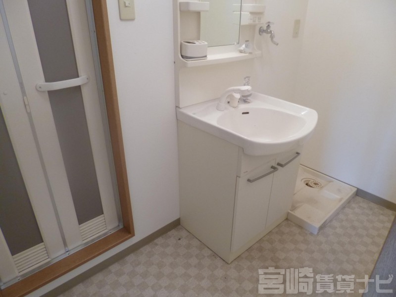 | 設備 | 水道:公営、 ガス:有(プロパンガス・集中)、 排水:公共下水、 角部屋:有、 ペット:ペット相談可(小型犬・猫)、 給湯:有(ガス)、 カウンターキッチン:有、 こんろ:無(ガス配管あり)、 こんろ口数:1口、 バス・トイレ別:有(バストイレ別)、 バス:有(専用)、 トイレ:有(専用/水洗)、 シャワー:有、 シャンプードレッサー:有、 独立洗面台:有、 洗濯機置場:屋内、 温水洗浄便座:有、 インターホン:有(ドアホンのみ)、 冷暖房設備:有(エアコン)、 フローリング:有、 バルコニー:有、 収納:有、 ケーブルTV:配線設置済(要個別契約)、 BS:有、 ブロードバンド:利用料無料、 駐輪場:有 | ||