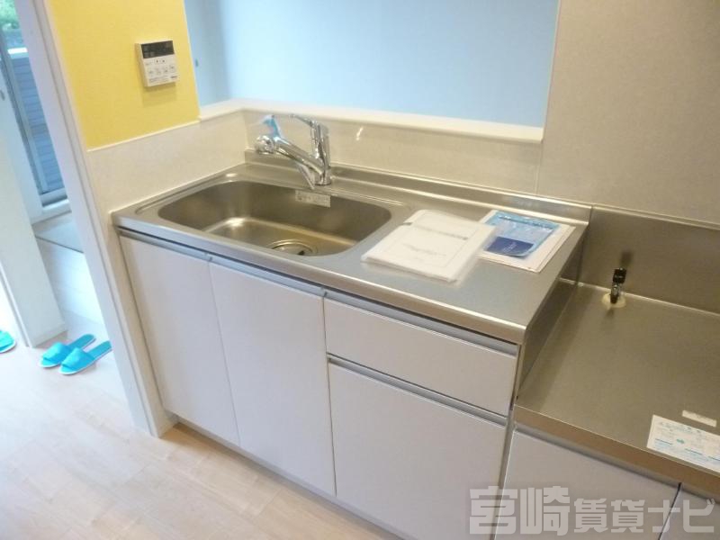 | 設備 | 水道:公営、 ガス:有(プロパンガス・集中)、 排水:公共下水、 ペット:不可、 2人入居可:可、 楽器相談:不可、 給湯:有(ガス)、 カウンターキッチン:有、 こんろ:無(ガス配管あり)、 バス・トイレ別:有(バストイレ別)、 バス:有(専用)、 トイレ:有(専用/水洗)、 シャワー:有、 追焚き:有、 浴室乾燥機:有、 シャンプードレッサー:有、 独立洗面台:有、 洗濯機置場:屋内、 温水洗浄便座:有、 インターホン:有(TVモニタ付)、 冷暖房設備:有(エアコン)2台、 フローリング:有、 バルコニー:有、 収納:有、 ケーブルTV:配線設置済(要個別契約)、 BS:有、 駐輪場:有(屋根付) | ||