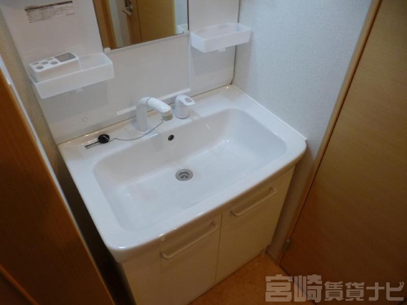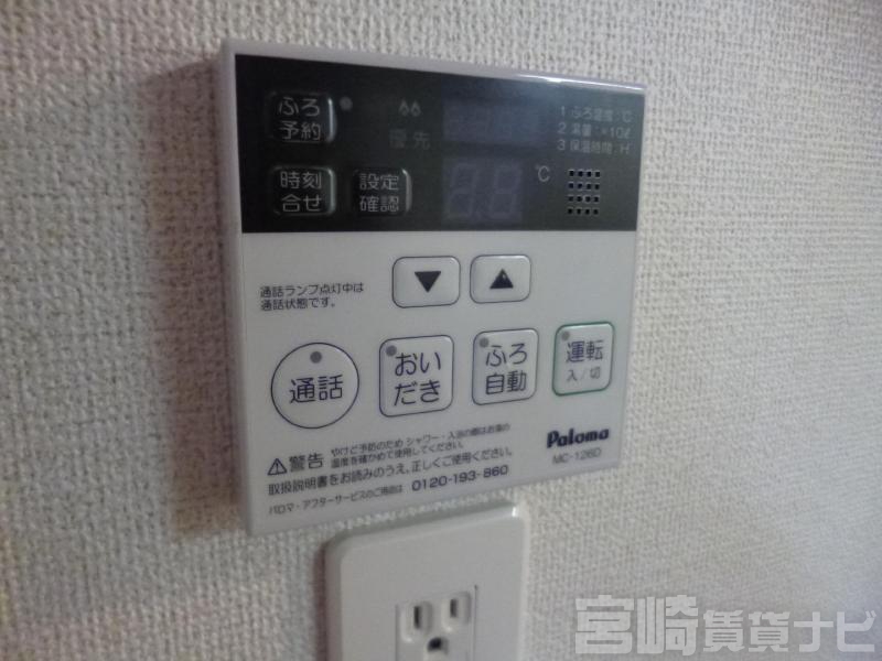 | 設備 | 水道:公営、 ガス:有(プロパンガス・集中)、 排水:公共下水、 角部屋:有、 ペット:ペット相談可(小型犬・猫)、 2人入居可:可、 給湯:有(ガス)、 こんろ:無(ガス配管あり)、 バス・トイレ別:有(バストイレ別)、 バス:有(専用)、 トイレ:有(専用/水洗)、 シャワー:有、 追焚き:有、 浴室乾燥機:有、 シャンプードレッサー:有、 独立洗面台:有、 洗濯機置場:屋内、 温水洗浄便座:有、 インターホン:有(TVモニタ付)、 冷暖房設備:有(エアコン)、 フローリング:有、 出窓:有、 バルコニー:有、 収納:有、 ブロードバンド:利用料無料、 駐輪場:有 | ||