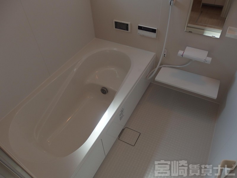 | 設備 | 水道:公営、 ガス:有(プロパンガス・集中)、 排水:公共下水、 ペット:不可、 2人入居可:可、 給湯:有(ガス)、 カウンターキッチン:有、 こんろ:無(ガス配管あり)、 バス・トイレ別:有(バストイレ別)、 バス:有(専用)、 トイレ:有(専用/水洗)、 シャワー:有、 追焚き:有、 浴室乾燥機:有、 シャンプードレッサー:有、 独立洗面台:有、 洗濯機置場:屋内、 温水洗浄便座:有、 インターホン:有(TVモニタ付)、 冷暖房設備:有(エアコン)、 フローリング:有、 バルコニー:有、 収納:有、 ウォークインクローゼット:有、 BS:有、 ブロードバンド:利用料無料、 駐輪場:有(屋根付) | ||
