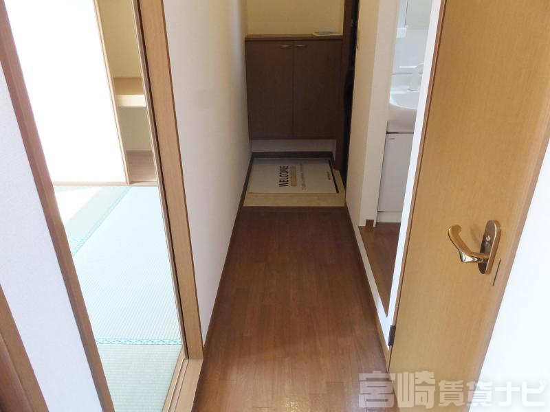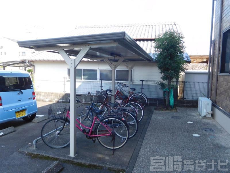 | 設備 | 水道:公営、 ガス:有(プロパンガス・集中)、 排水:公共下水、 角部屋:有、 ペット:不可、 2人入居可:可、 給湯:有(ガス)、 こんろ:無(ガス配管あり)、 バス・トイレ別:有(バストイレ別)、 バス:有(専用)、 トイレ:有(専用/水洗)、 シャワー:有、 シャンプードレッサー:有、 独立洗面台:有、 洗濯機置場:屋内、 温水洗浄便座:有、 インターホン:有(TVモニタ付)、 冷暖房設備:有(エアコン)、 フローリング:有、 専用庭:有、 出窓:有、 バルコニー:有、 収納:有、 ブロードバンド:利用料無料、 駐輪場:有(屋根付) | ||