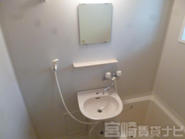 | 設備 | ガス:有(プロパンガス・個別)、 排水:公共下水、 ペット:不可、 2人入居可:可、 給湯:有(ガス)、 カウンターキッチン:有、 こんろ:無(ガス)、 バス・トイレ別:有(バストイレ別)、 バス:有(専用)、 シャワー:有、 洗濯機置場:屋内、 冷暖房設備:有(エアコン)、 フローリング:有、 バルコニー:有、 ブロードバンド:利用料無料 | ||