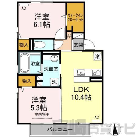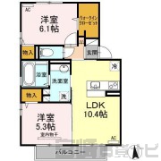 | 間取詳細 | 洋6.1 洋5.3 LDK10.4 | ||