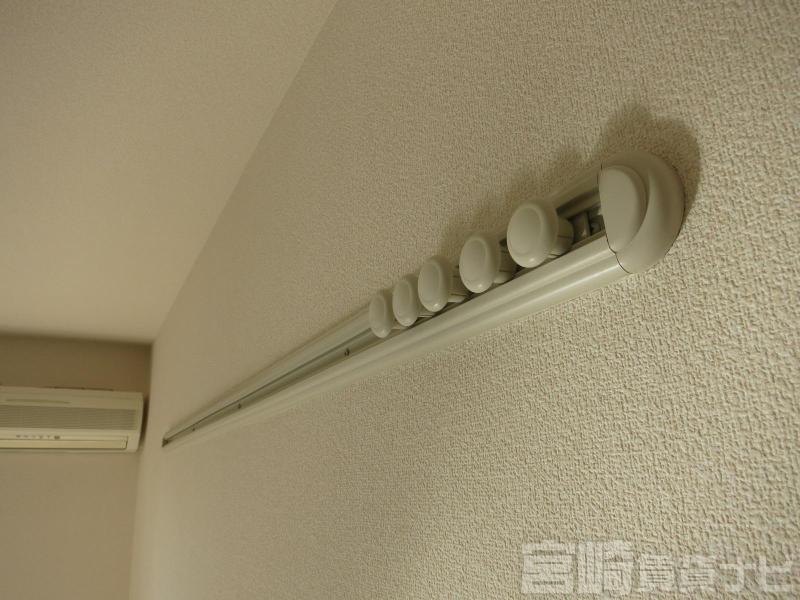 | 設備 | 水道:公営、 ガス:有(プロパンガス・集中)、 排水:公共下水、 角部屋:有(専用)、 給湯:有(ガス)、 こんろ:有(ガス)、 バス・トイレ別:有(バストイレ別)、 バス:有(専用)、 トイレ:有(専用/水洗)、 シャワー:有、 シャンプードレッサー:有、 独立洗面台:有、 洗濯機置場:屋内、 温水洗浄便座:有、 インターホン:有(TVモニタ付)、 フローリング:有、 バルコニー:有 | ||