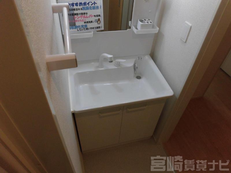 | 設備 | 水道:公営、 ガス:有(プロパンガス・集中)、 排水:公共下水、 角部屋:有、 ペット:不可、 2人入居可:可、 給湯:有(ガス)、 こんろ:無(ガス配管あり)、 バス・トイレ別:有(バストイレ別)、 バス:有(専用)、 トイレ:有(専用/水洗)、 シャワー:有、 追焚き:有、 浴室乾燥機:有、 シャンプードレッサー:有、 独立洗面台:有、 洗濯機置場:屋内、 温水洗浄便座:有、 インターホン:有(TVモニタ付)、 冷暖房設備:有(エアコン)、 フローリング:有、 出窓:有、 バルコニー:有、 収納:有、 駐輪場:有(屋根付) | ||
