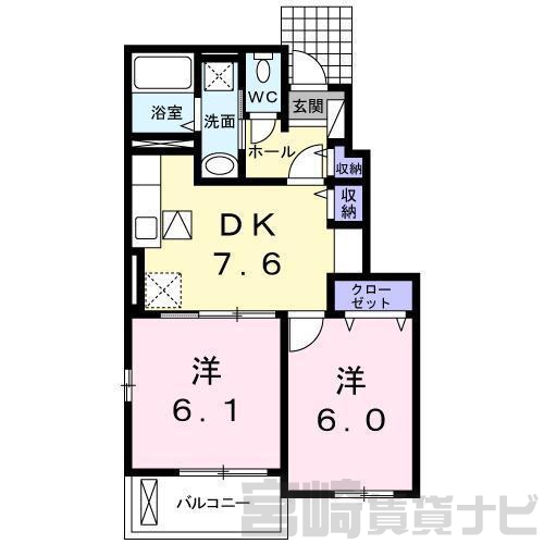 | 間取詳細 | 洋6.1 洋6 DK7.6 | ||