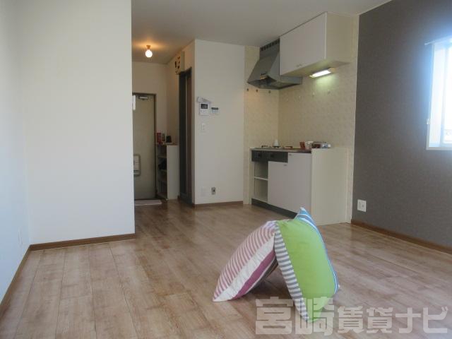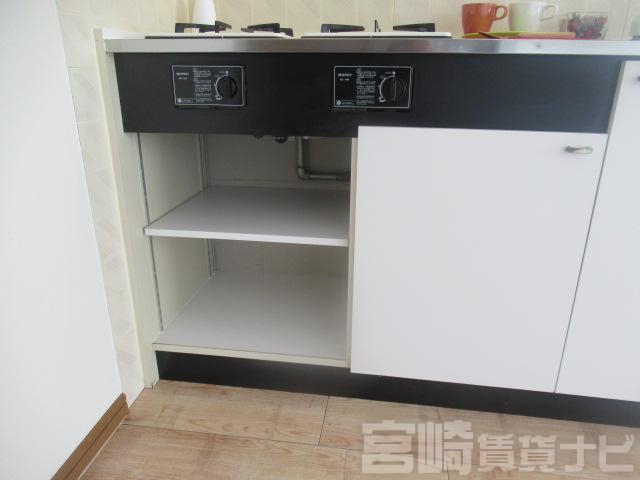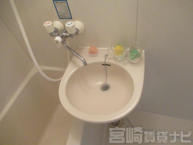 | 設備 | 水道:公営、 ガス:有(プロパンガス・集中)、 排水:公共下水、 角部屋:有(専用)、 給湯:有(ガス)、 こんろ口数:2口、 バス・トイレ別:有(バストイレ別)、 バス:有(専用)、 トイレ:有(専用/水洗)、 シャワー:有、 洗濯機置場:屋外、 冷暖房設備:有(クーラー)、 フローリング:有、 バルコニー:有、 収納:有、 ケーブルTV:配線設置済(要個別契約)、 BS:有、 ブロードバンド:利用料無料、 駐輪場:有(有料)、 24時間対応:有 | ||