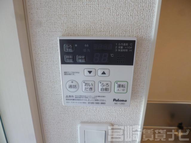 | 設備 | 水道:公営、 ガス:有(プロパンガス・個別)、 排水:公共下水、 角部屋:有、 ペット:不可、 2人入居可:可、 給湯:有(ガス)、 こんろ:無(ガス配管あり)、 バス・トイレ別:有(バストイレ別)、 バス:有(専用)、 トイレ:有(専用/水洗)、 シャワー:有、 追焚き:有、 浴室乾燥機:有、 シャンプードレッサー:有、 独立洗面台:有、 洗濯機置場:屋内、 温水洗浄便座:有、 インターホン:有(TVモニタ付)、 冷暖房設備:有(エアコン)、 フローリング:有、 バルコニー:有、 照明器具:有、 収納:有、 ケーブルTV:配線設置済(要個別契約)、 BS:有、 ブロードバンド:利用料無料、 駐輪場:有(屋根付) | ||