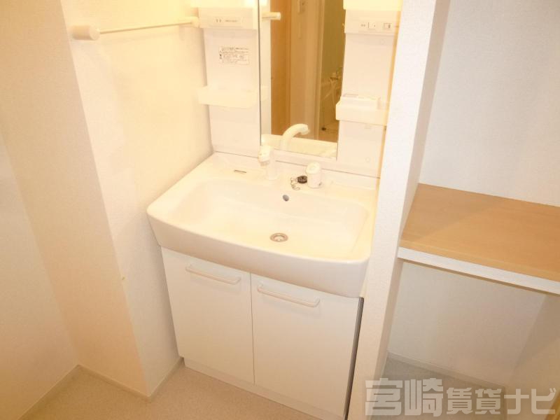 | 設備 | 水道:公営、 ガス:有(プロパンガス・集中)、 排水:公共下水、 ペット:不可、 2人入居可:可、 給湯:有(ガス)、 こんろ:無(ガス)、 バス・トイレ別:有(バストイレ別)、 バス:有(専用)、 トイレ:有(専用/水洗)、 シャワー:有、 浴室乾燥機:有、 シャンプードレッサー:有、 独立洗面台:有、 洗濯機置場:屋内、 温水洗浄便座:有、 インターホン:有、 冷暖房設備:有(エアコン)、 フローリング:有、 バルコニー:有、 収納:有、 床下収納:有 | ||