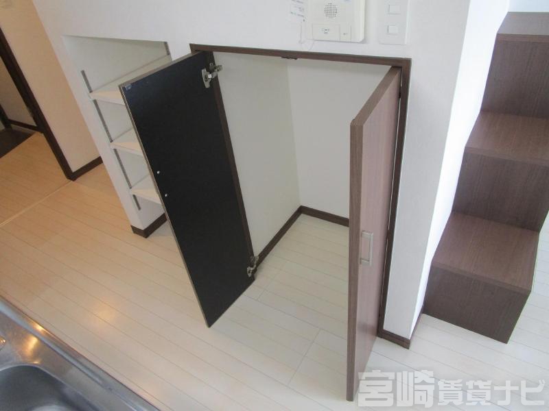 | 設備 | ロフト付き、 水道:公営、 ガス:有(都市ガス)、 排水:公共下水、 ペット:不可、 給湯:有(ガス)、 こんろ:無(ガス配管あり)、 こんろ口数:1口、 バス・トイレ別:有(バストイレ別)、 バス:有(専用)、 トイレ:有(専用/水洗)、 シャワー:有、 追焚き:有、 シャンプードレッサー:有、 独立洗面台:有、 洗濯機置場:屋内、 温水洗浄便座:有、 オートロック:有、 インターホン:有(TVモニタ付)、 宅配ボックス:有、 冷暖房設備:有(エアコン)、 フローリング:有、 エレベーター:有、 バルコニー:有、 ブロードバンド:利用料無料、 駐輪場:有(屋根付) | ||