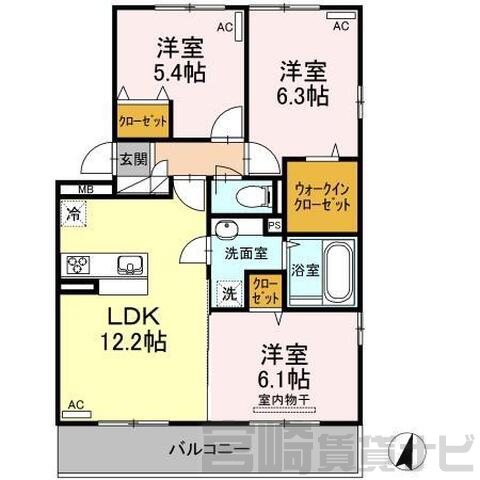 | 間取詳細 | 洋5.4、洋6.3、洋6.1、LDK12.2 | ||