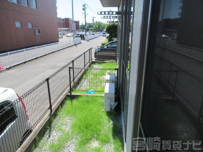 | 設備 | 水道:公営、 ガス:有(プロパンガス・集中)、 排水:公共下水、 角部屋:有、 ペット:ペット相談可(小型犬・猫)、 2人入居可:可、 給湯:有(ガス)、 こんろ:無(ガス配管あり)、 バス・トイレ別:有(バストイレ別)、 バス:有(専用)、 トイレ:有(専用/水洗)、 シャワー:有、 シャンプードレッサー:有、 独立洗面台:有、 洗濯機置場:屋内、 温水洗浄便座:有、 インターホン:有(TVモニタ付)、 冷暖房設備:有(エアコン)、 フローリング:有、 専用庭:有、 バルコニー:有、 収納:有、 ケーブルTV:配線設置済(要個別契約)、 駐輪場:有 | ||