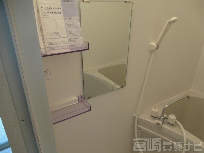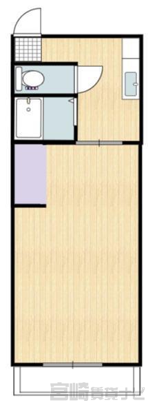| 設備 | 水道:公営、 ガス:有(プロパンガス・個別)、 排水:公共下水、 2人入居可:不可、 給湯:有(ガス)、 こんろ:無(ガス配管あり)、 こんろ口数:2口、 バス・トイレ別:有(バストイレ別)、 バス:有(専用)、 トイレ:有(専用/水洗)、 シャワー:有、 洗濯機置場:屋内、 温水洗浄便座:有、 インターホン:有(TVモニタ付)、 冷暖房設備:有(エアコン)、 フローリング:有、 バルコニー:有、 収納:有、 ケーブルTV:配線設置済(要個別契約)、 ブロードバンド:配線設置済(要個別契約)、 駐輪場:有 | ||