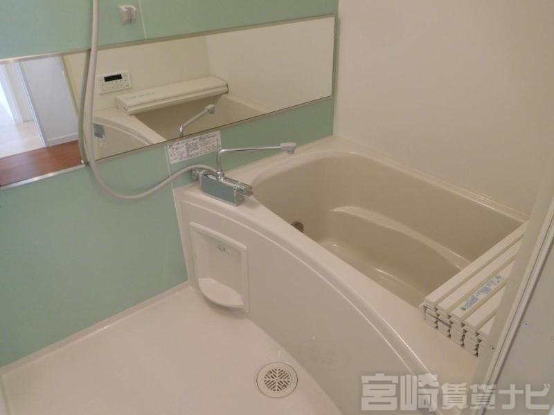 | 設備 | 水道:公営、 ガス:有(プロパンガス・集中)、 排水:公共下水、 ペット:不可、 2人入居可:可、 給湯:有(ガス)、 システムキッチン:有、 カウンターキッチン:有、 こんろ:有(IH)、 こんろ口数:2口、 バス・トイレ別:有(バストイレ別)、 バス:有(専用)、 トイレ:有(専用/水洗)、 シャワー:有、 追焚き:有、 浴室乾燥機:有、 シャンプードレッサー:有、 独立洗面台:有、 洗濯機置場:屋内、 温水洗浄便座:有、 インターホン:有(TVモニタ付)、 冷暖房設備:有(エアコン)、 フローリング:有、 バルコニー:有、 収納:有、 ケーブルTV:配線設置済(要個別契約)、 BS:有、 ブロードバンド:利用料無料、 駐輪場:有(屋根付) | ||