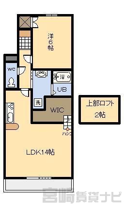 | 設備 | ロフト付き、 水道:公営、 ガス:有(プロパンガス・個別)、 排水:公共下水、 2人入居可:可、 給湯:有(ガス)、 こんろ:無(ガス配管あり)、 こんろ口数:1口、 バス・トイレ別:有(バストイレ別)、 バス:有(専用)、 トイレ:有(専用/水洗)、 シャワー:有、 シャンプードレッサー:有、 独立洗面台:有、 洗濯機置場:屋内、 温水洗浄便座:有、 オートロック:有、 インターホン:有(TVモニタ付)、 冷暖房設備:有(エアコン)、 フローリング:有、 出窓:有、 バルコニー:有、 ロフト:有、 照明器具:有、 収納:有、 ウォークインクローゼット:有、 ブロードバンド:利用料無料、 駐輪場:有(屋根付) | ||