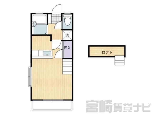 | 設備 | バス・トイレ別:バス・トイレ別、 シャワー:シャワー、 冷暖房設備:冷暖房:エアコン、 フローリング:フローリング、 ロフト:ロフト付き | ||