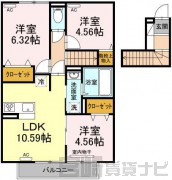 | 間取詳細 | LDK10.59 洋6.32 洋4.56 洋4.56 | ||