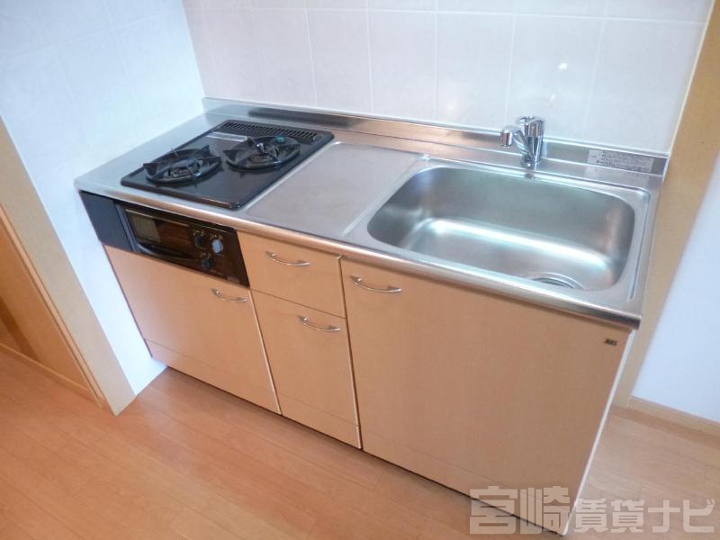 | 設備 | 水道:公営、 ガス:有(プロパンガス・集中)、 排水:公共下水、 角部屋:有、 ペット:ペット相談可(小型犬・猫)、 2人入居可:不可、 事務所使用:不可、 楽器相談:不可、 給湯:有(ガス)、 システムキッチン:有、 こんろ:有(ガス)、 こんろ口数:2口、 バス・トイレ別:有(バストイレ別)、 バス:有(専用)、 トイレ:有(専用/水洗)、 シャワー:有、 浴室乾燥機:有、 シャンプードレッサー:有、 独立洗面台:有、 洗濯機置場:屋内、 温水洗浄便座:有、 インターホン:有(TVモニタ付)、 冷暖房設備:有(エアコン)、 フローリング:有、 専用庭:有、 バルコニー:有、 収納:有、 駐輪場:有(屋根付) | ||