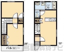 | 設備 | メゾネットタイプ、 水道:公営、 ガス:有(プロパンガス・集中)、 排水:公共下水、 角部屋:有、 ペット:不可、 2人入居可:可、 給湯:有(ガス)、 カウンターキッチン:有、 こんろ:無(ガス配管あり)、 バス・トイレ別:有(バストイレ別)、 バス:有(専用)、 トイレ:有(専用/水洗)、 シャワー:有、 追焚き:有、 シャンプードレッサー:有、 独立洗面台:有、 洗濯機置場:屋内、 温水洗浄便座:有、 インターホン:有(TVモニタ付)、 冷暖房設備:有(エアコン)、 フローリング:有、 出窓:有、 バルコニー:有、 収納:有、 ブロードバンド:利用料無料 | ||