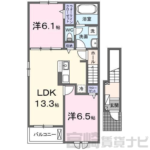 | 間取詳細 | LDK13.3 洋6.1 洋6.5 | ||