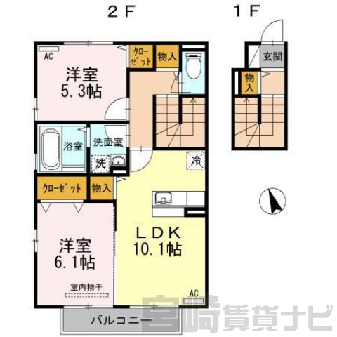 | 間取詳細 | LDK10.1、洋5.3、洋6.1 | ||