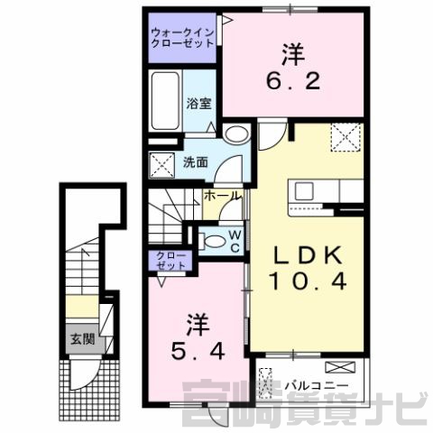 | 間取詳細 | 洋6.2、洋5.4、LDK10.4 | ||