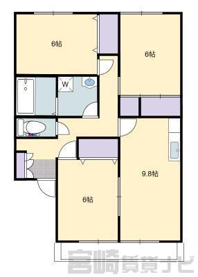 | 間取詳細 | 洋6 洋6 洋6 LDK9.8 | ||