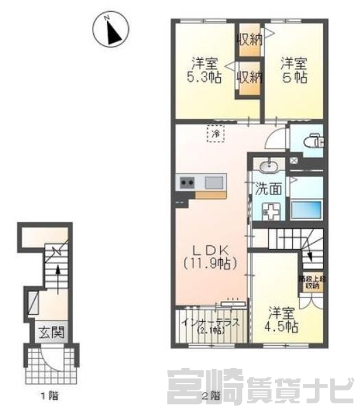 | 間取詳細 | LDK11.9 洋5 洋5.3 洋4.5 | ||