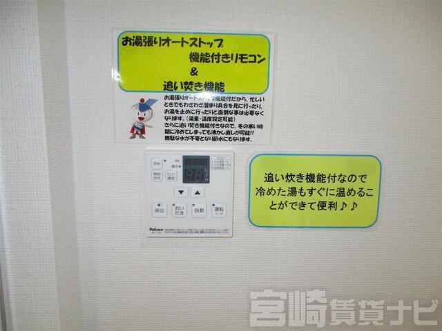 | 設備 | バス・トイレ別:バス・トイレ別、 シャワー:シャワー、 追焚き:追い焚き、 オートロック:オートロック、 インターホン:TVドアホン、 宅配ボックス:宅配ボックス、 冷暖房設備:冷暖房:エアコン、 フローリング:フローリング、 出窓:出窓、 バルコニー:バルコニー、 ケーブルTV:CATV、 BS:BSアンテナ | ||