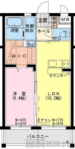 | 間取詳細 | LDK10.2、洋6.4 | ||
