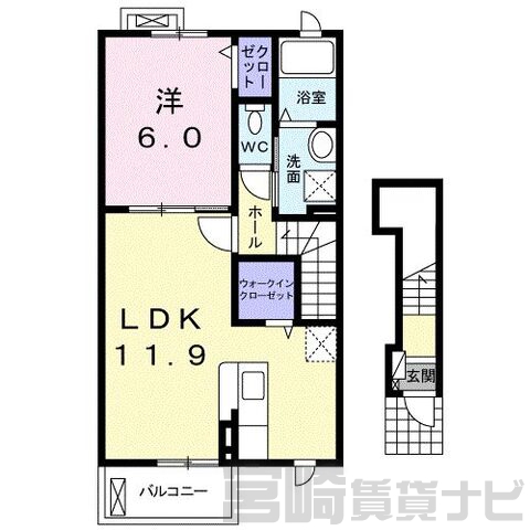 | 間取詳細 | LDK11.9、洋6 | ||