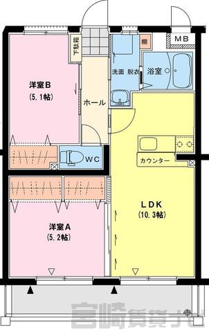 | 間取詳細 | LDK10.3、洋5.1、洋5.2 | ||